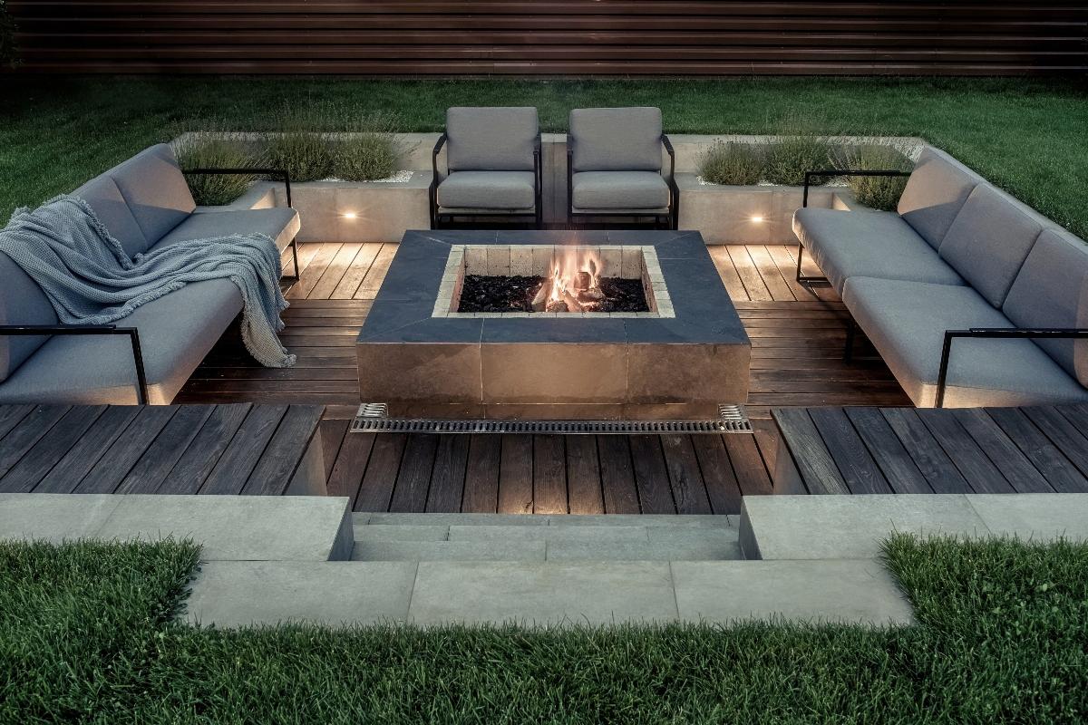 A strong focal point creates an obvious communal space for outdoor gatherings. Seating and additional hardscaping can be further built around this point. Simpler options, like portable fire bowls can create the same effect.