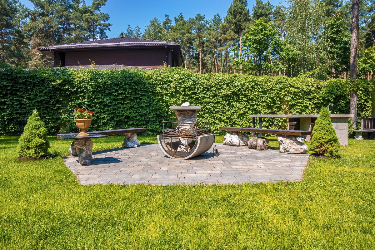 An essential for every communal space is comfortable seating. No matter the size of your patio, seating is important to make your guests feel at home. Adirondack chairs and stone benches provide space to lounge. Natural wood benches are another fun design choice that can add a rustic feel to a patio space.